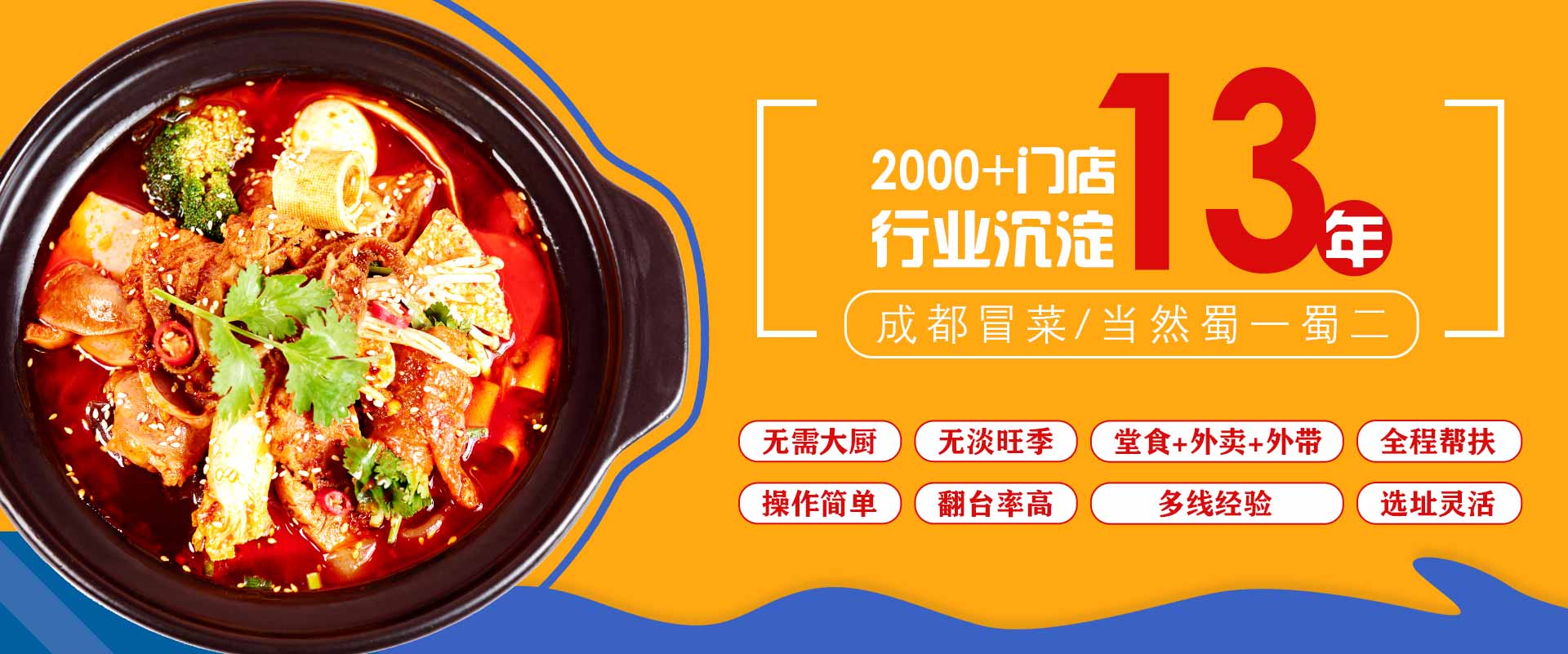 至今,蜀一蜀二一直秉承創始人“開一個店,就要活一個店”的宗旨,不斷在提升加盟商經營能力和味型上花時間、花功夫、花心思,想盡一切辦法、動用一切資源讓信賴我們的加盟商不僅能養活一家人、陪伴一家人,還能增加存款,是我們終身追求!??MORE →